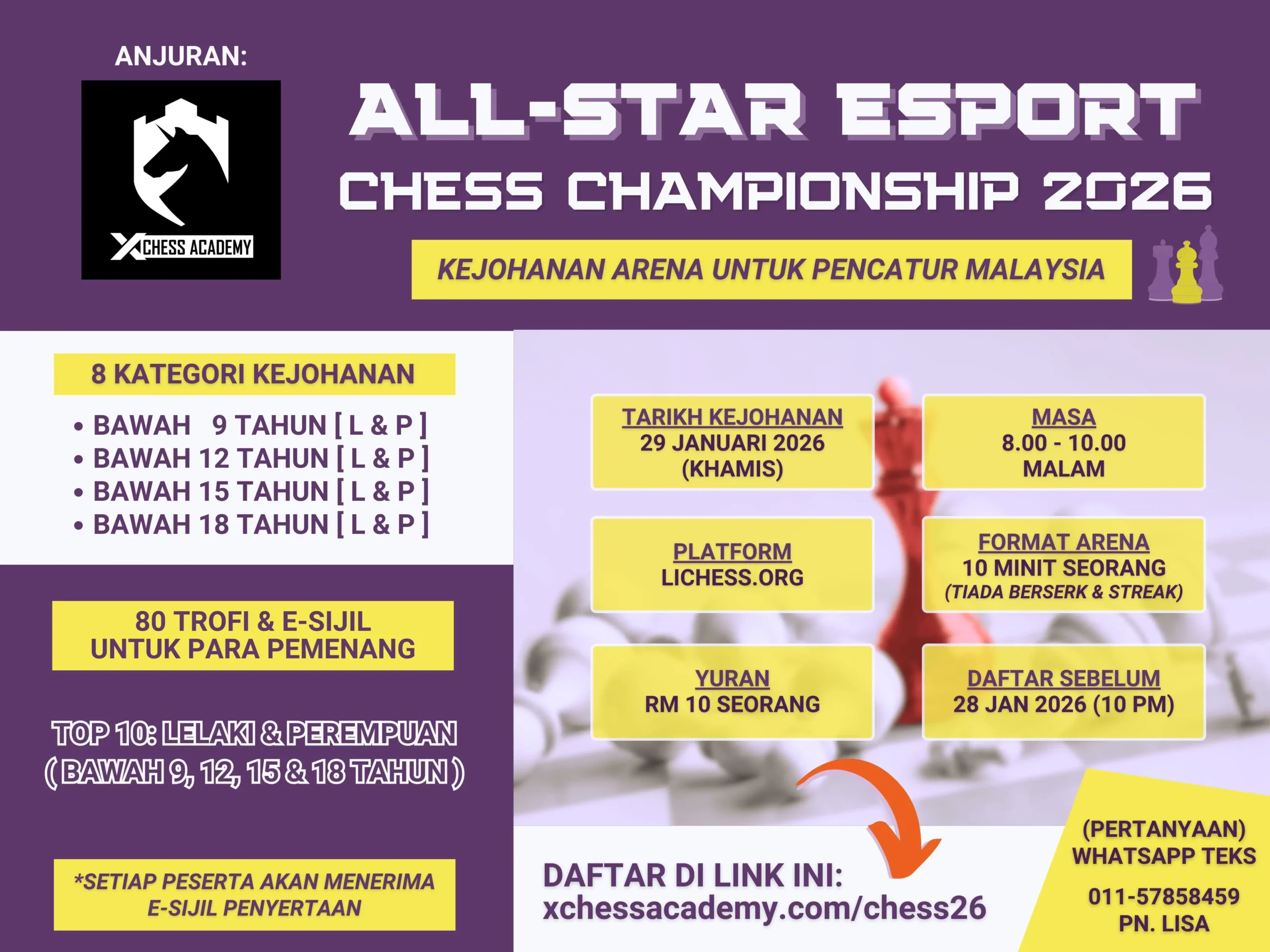© 2026 X Chess Academy. Hakcipta Terpelihara | Dimiliki oleh Xchess Ventures (KT0435325-W) | Chessaurus dan X Chess Academy adalah jenama rasmi Xchess Ventures.