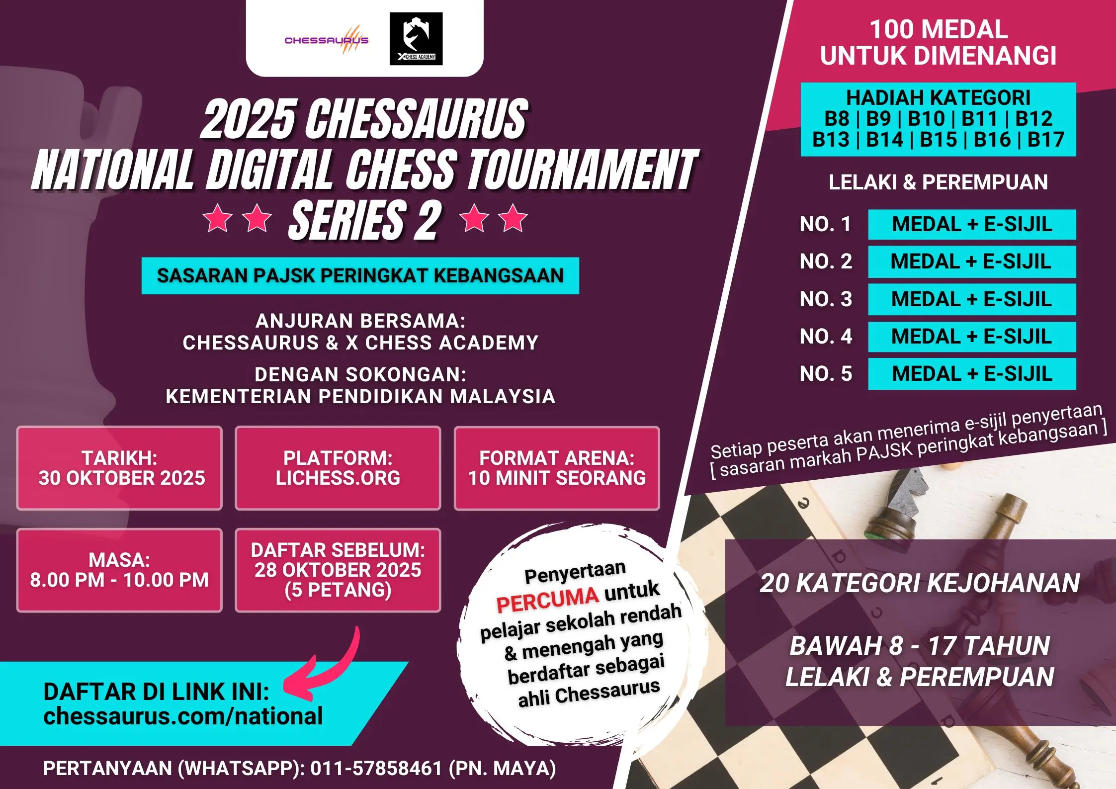 © 2025 X Chess Academy. Hakcipta Terpelihara | Dimiliki oleh Xchess Ventures (KT0435325-W) | Chessaurus dan X Chess Academy adalah jenama rasmi Xchess Ventures.
